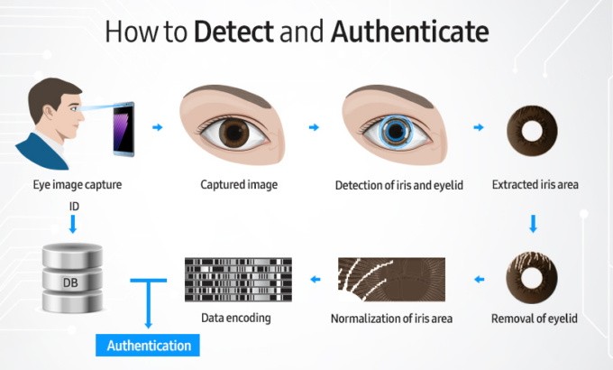 По большей части, сканер нового фаблета от Samsung работает по описанной выше схеме, любопытная деталь заключается в том, что на фронтальной панели Galaxy Note 7 располагается камера, которая занимается исключительно распознаванием радужной оболочки глаза. Почему же фронтальная камера не может выполнять эту задачу? Потому что камера должна быть чувствительна к ИК спектру. В обычных камерах ИК свет фильтруется, так как он портит обычные фотографии. Кроме этого считывающая камера имеет более узкий угол обзора, чтобы видеть глаз пользователя лучше, особенно на расстоянии.Насколько это безопасно?
